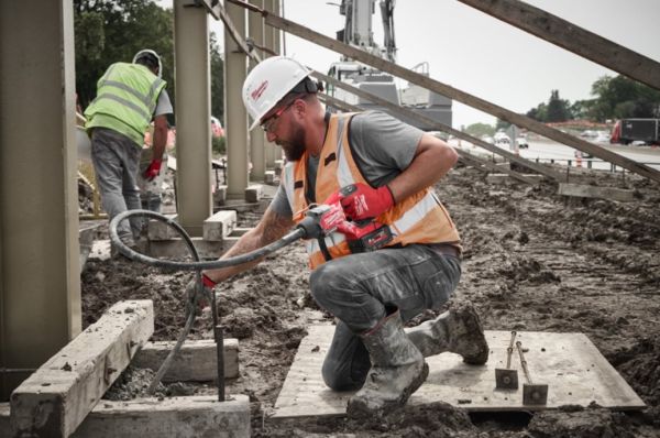 Може ущільнити цілий міксер бетону (до 8 м³) на одному заряді акумулятора M18™ HIGH OUTPUT™ 5.5 Ач