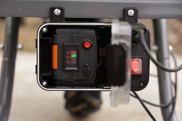 Керування тачкою зроблено максимально зручним та безпечним завдяки спеціальному елементу керування, розташованому на правій ручці. Це дозволяє оператору легко та точно керувати рухом тачки, забезпечуючи високу маневреність та точність виконання завдань.