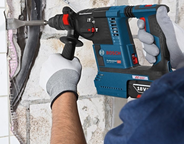 Акумуляторний перфоратор BOSCH GBH 18 V-26 Professional – нова інноваційна модель акумуляторного перфоратора з патроном SDS-Plus та антивібраційною рукояткою. Модель перфоратора BOSCH GBH 18 V-26 Professional оснащена компактним і пиленепроникним безщітковим двигуном. Оснащення підсвічуванням світлодіодами перфораторами BOSCH GBH 18 V-26 Professional робить роботу зручною в умовах недостатнього освітлення. Бездротовий перфоратор BOSCH GBH 18 V-26 Professional може обробляти до 216 отворів у бетоні лише на одному акумуляторі.