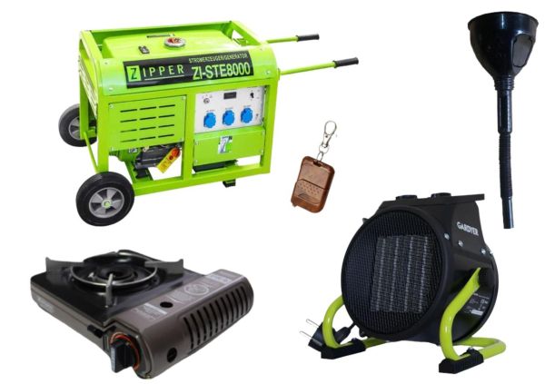 Переваги комплекту бензиновий генератор Zipper ZI-STE8000 + газова плитка Orcamp CK-505 + електричний обігрівач Gardyer HE2000