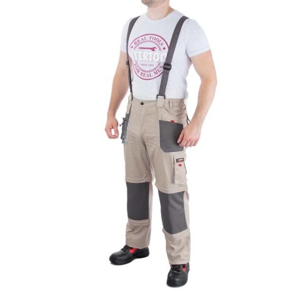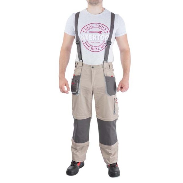 Брюки трансформер робочі з лямками 6 в 1, 100% бавовна, щільність 180 г / м2, L INTERTOOL SP-3043