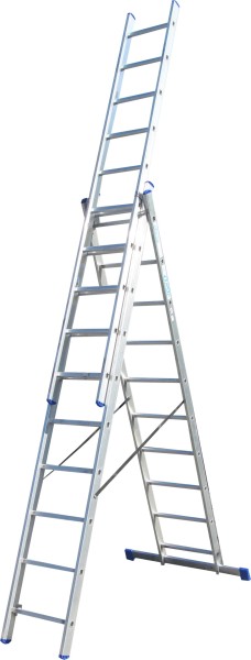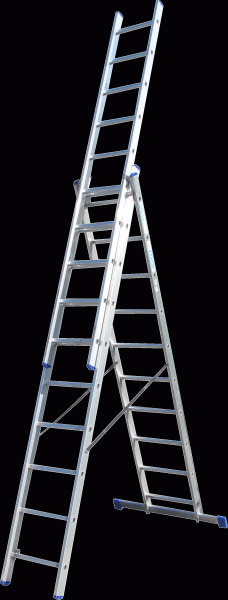 Elkop VHR- алюмінієва трисекційна розкладна драбина, яка підходить як для побутового, так і для професійного використання (VHR T – хобі, VHR H – професійна). Ця модель може використовуватися як в ролі приставних драбин, А-подібному вигляді та бути у формі стремянки. Діапазон висот – 6-15 сходинок (4,2- 10,4м). Простий та надійний принцип розкладання – дозволяє швидко змінювати висоту та формат драбини. Протиковзні полімерні упори, наскрізне кріплення сходинок. Текстильні стрічки для додаткової стабілізації та захисту від випадкового складання. Оснащена надійним фіксатором секцій.