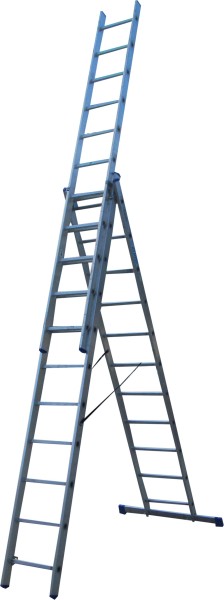 Elkop VHR Н - алюмінієва трисекційна розкладна драбина, яка підходить як для побутового, так і для професійного використання (VHR T – хобі, VHR H – професійна). Ця модель може використовуватися як в ролі приставних драбин, А-подібному вигляді та бути у формі стремянки. Діапазон висот – 6-15 сходинок (4,2- 10,4м). Простий та надійний принцип розкладання – дозволяє швидко змінювати висоту та формат драбини. Протиковзні полімерні упори, наскрізне кріплення сходинок. Текстильні стрічки для додаткової стабілізації та захисту від випадкового складання. Оснащена надійним фіксатором секцій.