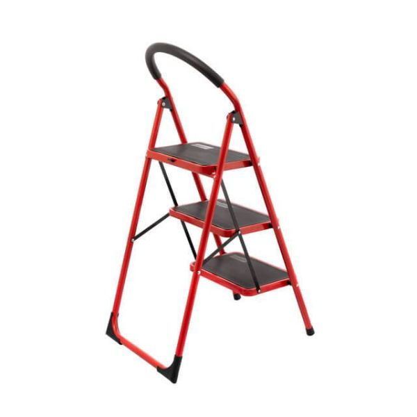 Передбачена система безопеки для захисту від випадкового складання драбини під час роботи (на останній сходинці є спеціальний металевий гак, який фіксує відкидну частину). Ніжки обладнані пластиковими башмаками проти ковзання.