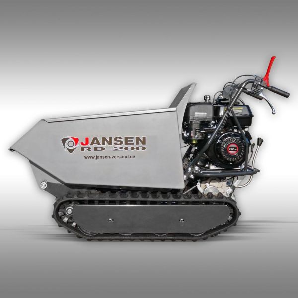 Гусеничний міні-самоскид Jansen RD-200 із загальною вантажопідйомністю 500 кг може ефективно застосовуватися у різноманітних сферах. Завдяки бензиновому двигуну з реверсивним пуском потужністю 9 к.с. він легко впорається з інтенсивними навантаженнями, а потужна гідравлічна система значно спрощує роботу з великими вантажами.