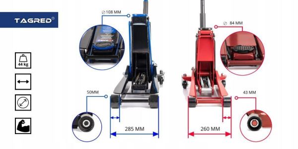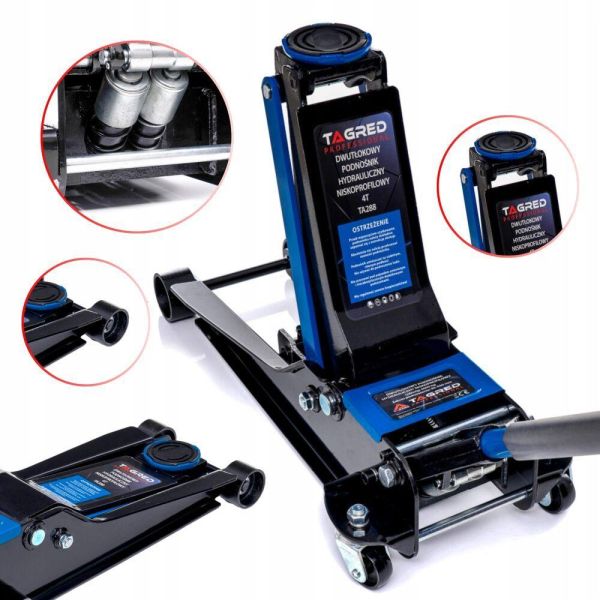 Двопоршневий низькопрофільний домкрат TAGRED TA288 - є ідеальним обладнанням для домашніх гаражів і для любителів автомобілів, які цінують якість і найвищу безпеку. Завдяки широким переднім колесам і стійкій конструкції підйомник дозволяє легко піднімати транспортні засоби вагою до 4 тонн, усуваючи будь-які протікання, вібрацію або вигини. Це незамінне обладнання для тих, хто очікує найвищої якості та безкомпромісної безпеки.