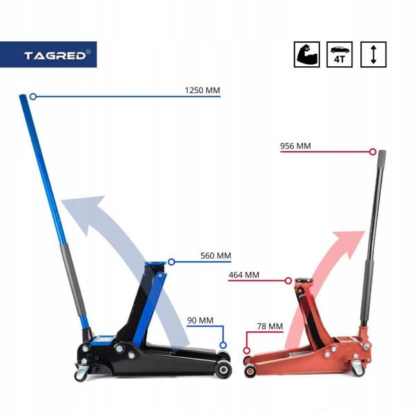 ✅Домкрат TAGRED не має аналогів у порівнянні з традиційними однопоршневими домкратами, оскільки для швидкого підйому автомобіля потрібно лише кілька рухів важеля. Механізм домкрата заснований на двопоршневому гідравлічному циліндрі, що гарантує миттєвий, плавний і ефективний підйом автомобілів.