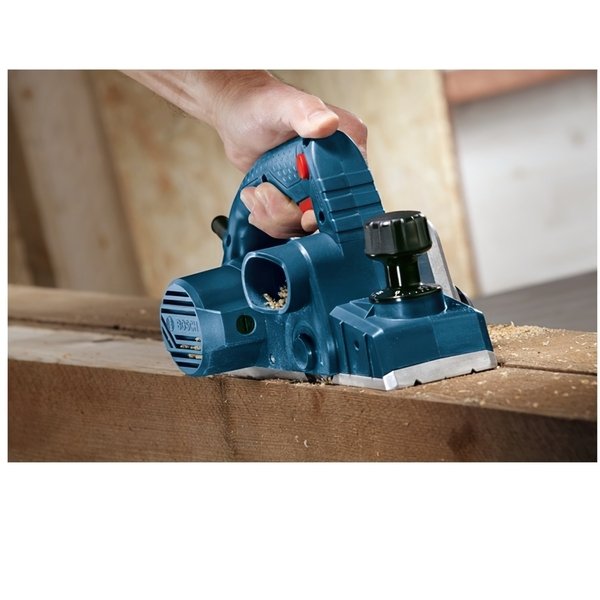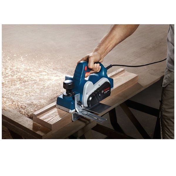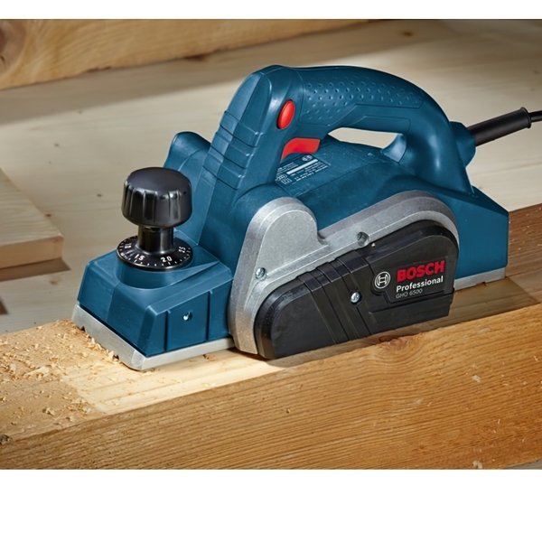 Bosch GHO 6500 - потужний рубанок з максимальною глибиною знімання 2,6 мм! Чому саме цей інструмент? Зручний перемикач з блокуванням для лівшів і правшів. Паркувальний черевик - не пошкоджує дерев'яні поверхні. 2 перезатачіваемих ножа зі швидкорізальної сталі скорочують витрати на обслуговування. 3 паза для знімання фасккі. Ергономічна рукоятка, що забезпечує комфорт при роботі рубанком. Потужний двигун 650 Вт забезпечує високу швидкість роботи рубанка. Нова конструкція забезпечує максимальну настройку глибини знімання 2,6 мм. Оптимальний повітряний потік для здування деревної стружки. Характеристики Номінальна споживана потужність 650 W Регульована товщина стружки 0 - 2,6 мм Маса без кабелю 2,8 кг Регульована глибина вибірки паза 0 - 9 мм Число оборотів холостого ходу 16 500 об/хв Довжина 280 мм Ширина 158 мм Висота 140 мм В комплекті Ключ з внутрішнім шестигранником паралельний упор Картонна коробка Заточувати пристрій для ножів з швидкорізальної сталі Калібрувальний шаблон для ножів з швидкорізальної сталі