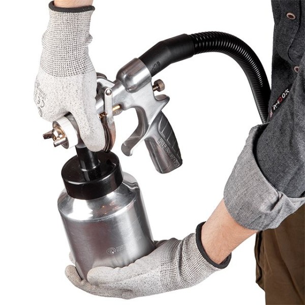 Завдяки системі HVLP здійснюється ефективне перенесення лакофарбового матеріалу на поверхню з мінімізацією втрат, а колекторний двигун з турбіною створить необхідний тиск для фарбування. Фарборозпилювач INTERTOOL DT-5060 оснащений двигуном, потужністю 600 Вт. Витрата повітря даного інструмента становить 1650 л/хв., а робочий тиск - від 0,14 до 0,70 бар.