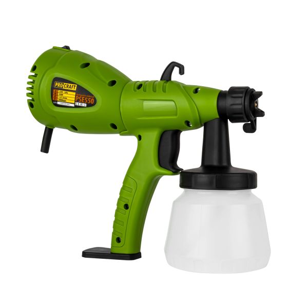 Фарбопульт Procraft PSE550 - пристрій для малярних робіт потужністю 350 Вт, призначений для розпилення лакофарбових матеріалів на оброблювану поверхню. Технічні особливості фарбопульта оптимальний обсяг резервуара - 800 мл; висока продуктивність - за одну хвилину роботи можна витратити до 640 мл. фарби; є регулятор витрати ЛФМ; рівномірне нанесення фарби без пропусків, плям і патьоків; опція повільного регулювання потоку повітря; підходить для роботи з олійними і водними фарбами. Переваги моделі Фарбопульт помітно підвищує якість фарбування і прискорює сам процес. Регулюючи подачу фарби, можна накладати кілька тонких шарів для отримання необхідного ефекту. Маючи в своєму арсеналі таке просте пристосування, можна повністю відмовитися від малоефективних і незручних пензликів і валиків. Дана модель фарбопульта має компактні розміри і важить всього 1,6 кг, що значно спрощує фарбування виробів і дозволяє працювати з предметами складної конфігурації. Рука не втомлюється в процесі роботи, завдяки ергономічній формі рукоятки.