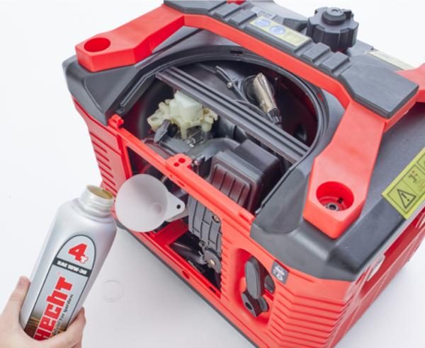 Оснащений 4-х тактним двигуном об'ємом 53,5 см3 і потужністю 2 к.с.