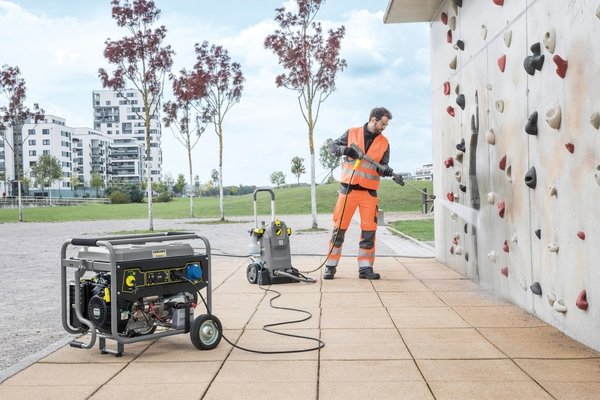 Генератор може легко приводити в дію апарати високого тиску з холодної і гарячою водою з однофазними або навіть трифазними електродвигунами. Клієнти, які мають електричним очищувачем високого тиску, але вимагають незалежності від джерела живлення для конкретного завдання очищення, можуть їх запускати за допомогою електрогенератора