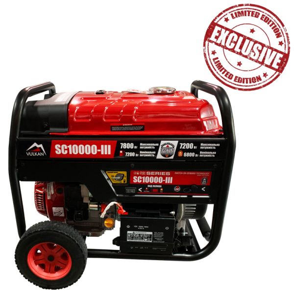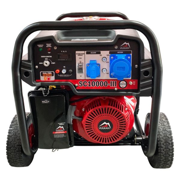 Газобензиновий генератор Vulkan SC10000-III- пристрій для забезпечення електричним струмом обладнання та електроприладів, в умовах, коли немає можливості скористатися іншими джерелами електроенергії. Електростанція Vulkan SC10000-III здатна працювати від двох видів палива: бензину і зрідженого газу LPG (пропан-бутану).