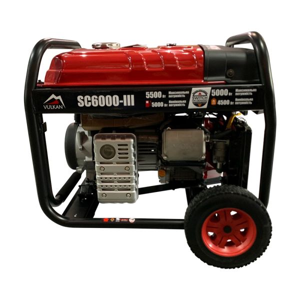 Електростанція SC6000-III змонтована на надійній металевій рамі, діаметром 38 мм і тому витримує великі навантаження на корпус без пошкодження. Для полегшення транспортування, генератор Vulkan в комплекті має пару коліс діаметром 22 см.