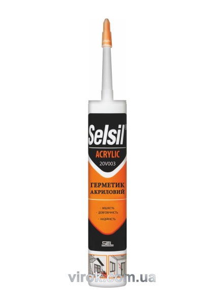 Герметик акриловий білий SELSIL застосовується для структурної герметизації в будівельних конструкціях, герметизації покрівлі, кутових з'єднань, склеювання бетонних та керамічних плиток, з'єднання швів на дерев'яних, алюмінієвих та ПВХ поверхнях, при ізоляції між панельних швів. Стійкість до води, хімічно та біологічно агресивних розчинів помірних концентрацій. Однокомпонентний. Легко наноситься пістолетом. Тиксотропний (відновлення структури). Можливість фарбування. Стійкість до зміни погодних умов. Постійна еластичність. Щільний герметик для рівних поверхонь. Простота та зручність у використанні. Надійність та тривалий термін служби.