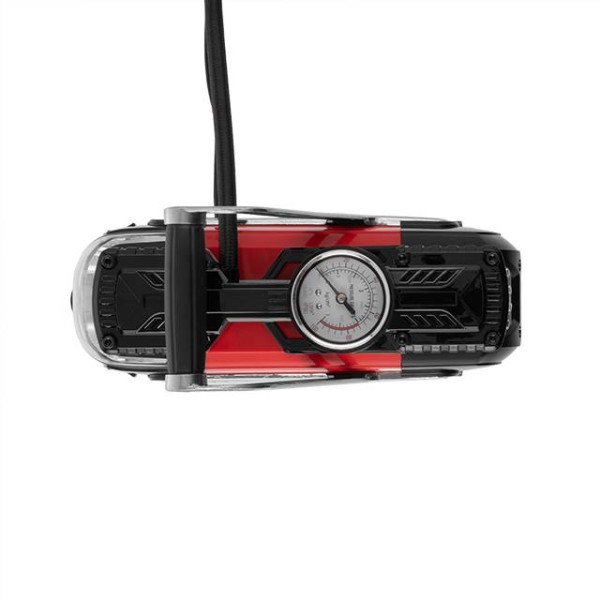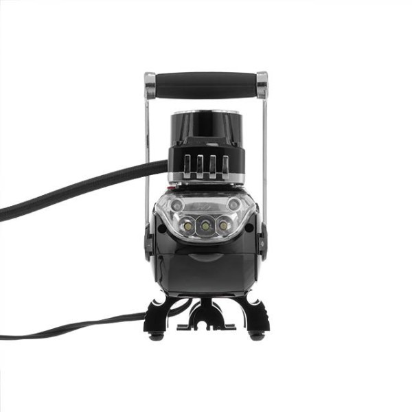 Вбудований LED-ліхтар допоможе зручно накачати колесо навіть у темну пору доби, працює як від прикурювача, так і від батарейок ААА типу.