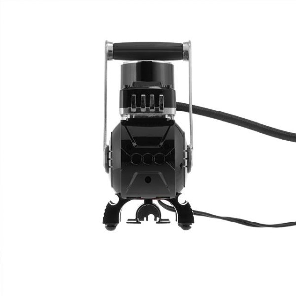 Компресор має дуже скромні габарити, тому разом із комплектом та сумкою поміститися навіть у невеликих багажниках. Живлення здійснюється від прикурювача автомобіля 12 В, тому ви зможете легко накачати колесо в дорозі. Довжина мережевого дроту 3 метри.