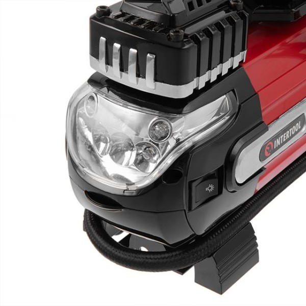Оптимальний показник тиску в шинах – обов'язкова умова безпеки на дорозі та для довговічної експлуатації шин. Автомобільний компресор INTERTOOL AC-0003 здатний накачати за лічені хвилини колесо вашого авто до необхідного тиску. Оскільки правильний показник тиску допомагає продовжити термін служби шин, зменшує витрату пального та загалом покращує їзду.