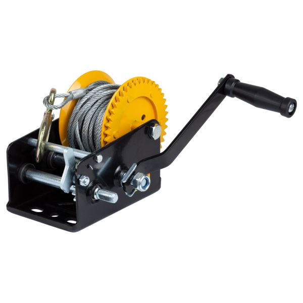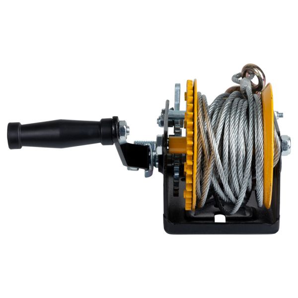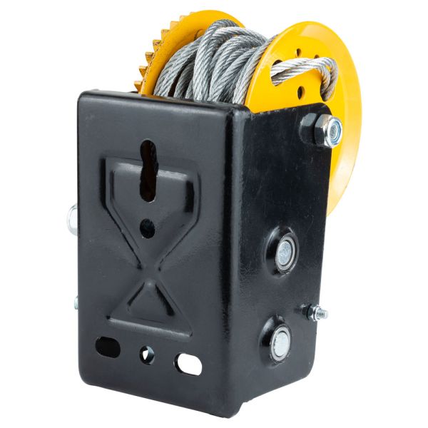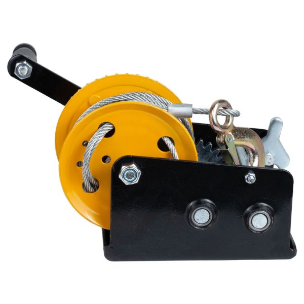 Сталевий трос для переміщення вантажу кріпиться до вушка барабана. Модель обладнана двоступінчастим редуктором і може використовуватися не тільки для силового переміщення вантажів, а й для швидкісного. Перемикання режимів здійснюється шляхом перестановки ручки.