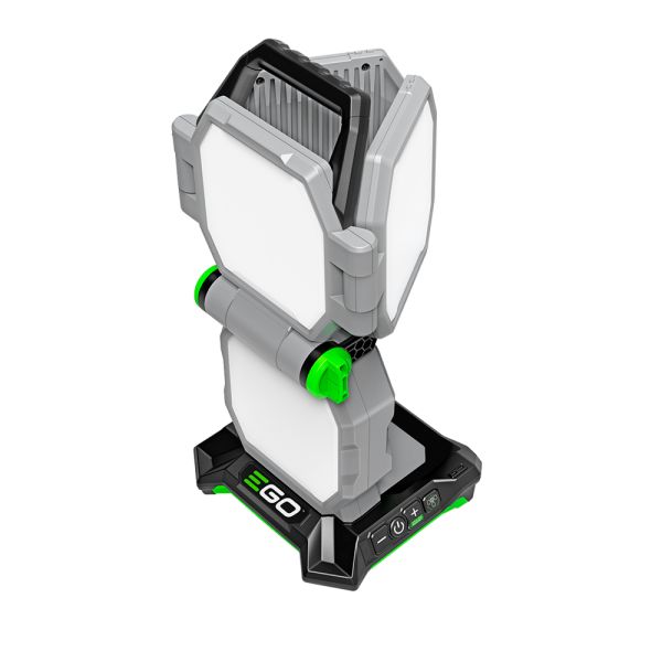 EGO LT1000E - найпотужніший у світі портативний акумуляторний ліхтар із серії EGO Power+ з максимальною яскравістю 10000 Лм. Ідеально підходить для використання всередині приміщень і на вулиці, завдяки розсіювальним панелям для більш м'якого світла. Через конструкцію LED-панелей, що складаються, забезпечує освітлення на 360 градусів. Корпус оснащений гаками для підвісу ліхтаря і різьбленням для установки на штативи.