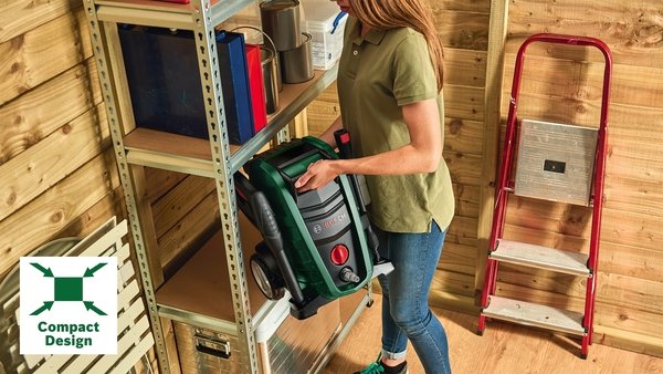 Мийка високого тиску Bosch - вирізняється простотою і зручністю використання. Корпус обладнаний складною ручкою і збільшеними колесами, що значно полегшує транспортування і зберігання пристрою. Також конструкція апарату передбачає котушку для намотування шланга.