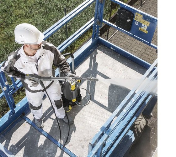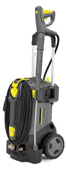 Зручний, мобільний, універсальний: апарат високого тиску HD 5/15 C без нагріву води для вертикальної і горизонтальної експлуатації. З зручними утримувачами для приладдя і довгим терміном служби завдяки латунної голівці блоку циліндрів і автоматичній системі скидання тиску.