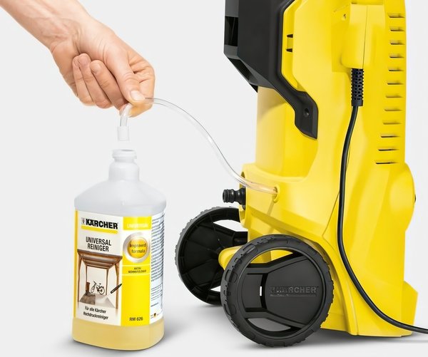 Компактна і продуктивна машина для мийки садових меблів, складських приміщень, вело- та мототехніки, зборів, доріжок і т. Д. За годину роботи вона дозволяє відмити поверхню площею 20 м2. Завдяки можливості використання миючих засобів (всмоктування через трубку) – забезпечує найбільш ефективну мийку. Мийка високого тиску оснащена пістолетом високого тиску І 2 розпилювальними трубками з Адаптером Quick Connect. Рівень тиску можна встановити безпосередньо на Розпилювачі Click Vario POWER – для максимального контролю при виконанні будь-якого завдання Очищення. Апарат також має регульовану по висоті телескопічну ручку для зручного транспортування і зберігання, шланг для легкого нанесення миючих засобів, практичні тримачі для приладдя, пістолет високого тиску і кабель, а також 5-метровий шланг високого тиску.