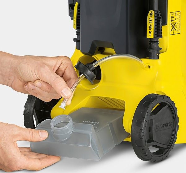 Регулювання тиску на струменевого трубці і перевірка тиску на індикаторі ручного пістолета – все для максимального контролю і ідеального вибору режиму в залежності від поверхні. Ви можете перейти від високого тиску до режиму подачі миючого засобу, не змінюючи струминну трубку. Мийка K 3 Full Control від Kärcher також має висувну телескопічну ручку для зручного переміщення та зберігання, а також опорна стійка для більшої стійкості. Опорну стійку можна використовувати ще і як другу ручку для перенесення, за рахунок чого апарат легко підняти на полицю або помістити в багажник автомобіля. Продуктивність очистки по площі 25 м²/год.