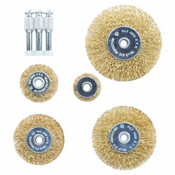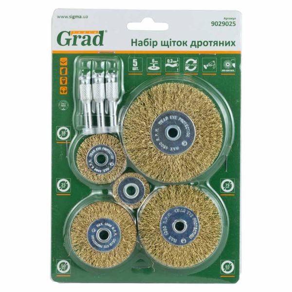 Набір щіток дротяних 5шт Ø25; 38; 50; 65; 75мм хвостовик Ø6мм (латуньована) GRAD (9029025)