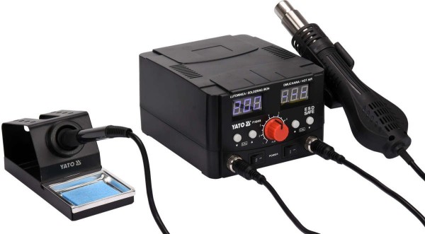Паяльна станція 2-в-1 з символом YT-82458 виготовлена за технологією ESD-безпеки, яка гарантує, що на корпусі не накопичується надлишковий електростатичний заряд. Це знижує ризик пошкодження, наприклад, чутливих SMD-схем. До робочої температури 350°C паяльна станція нагрівається приблизно за 15 секунд, а гаряче дуття - приблизно за 10 секунд.