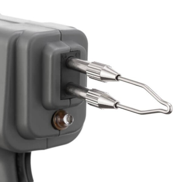 Паяльник виконаний у формі пістолета з курком, його зручно тримати в руці, прогумована накладка на ручці для кращої фіксації в долоні. Насадку можна легко замінити на нову за допомогою різьбового кріплення. Міцний пластиковий корпус не деформується під впливом температур, адже він термостійкий. Довгий мережевий дріт 1,5 метра для комфортнішої роботи.