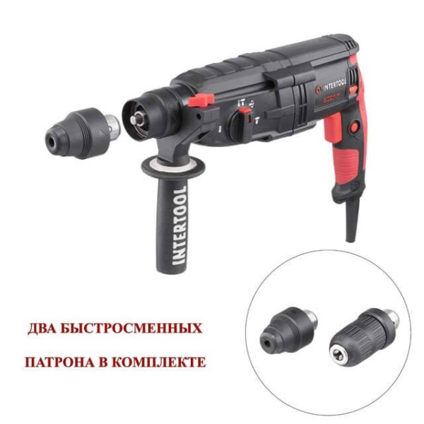 Перфоратор INTERTOOL WT-0171 надійний помічник для виконання будівельних робіт. За допомогою цього інструмента можна виконувати буріння отворів в бетоні діаметром до 68 мм за допомогою коронок, і до 26 мм - буром. Також даний перфоратор свердлить отвори до 13 мм в сталі, і до 32 мм в деревині.