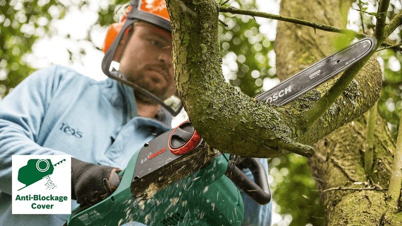 Ланцюгова пила UniversalChain вагою всього 4,2 кг та ергономічним дизайном для максимальної зручності користувача. Потужний двигун потужністю 1800 Вт зі швидкістю ланцюга 12 м/с забезпечує швидке різання. Компактна система SDS від Bosch дозволяє легко та без інструментів натягувати та обслуговувати ланцюги. Великий бічний масляний бак із практичною кришкою забезпечує легке заповнення автоматичної системи мастила ланцюга. Надійне гальмо із захистом від віддачі гарантує повну зупинку ланцюга для додаткової безпеки. Ця бензопила проста у використанні та керуванні, що робить її ідеальною для різання колод, гілок та дерев невеликого та середнього розміру.