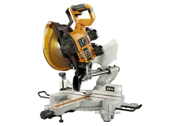Пила торцьовальна акумуляторна безщіткова AEG : 18В Li-Ion, диск Ø=254мм, 0-45°, гл.90мм (БЕЗ АКБ)
