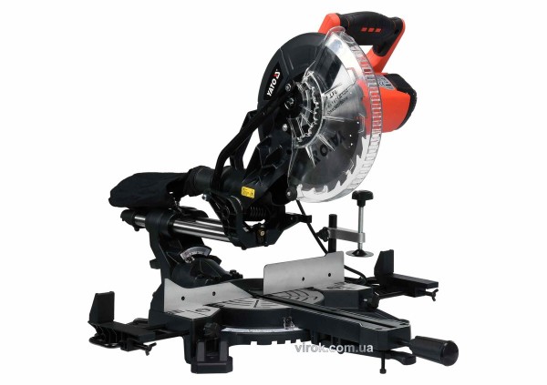 Пила торцьовальна з лазером і протяж.YATO:P=1.8кВт,диск Ø=255/30мм,5000 об/хв,гл.різу 0°/45°-80/50мм
