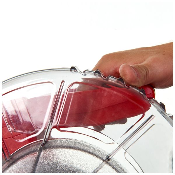 Зручна стопорна ручка, розташована у верхній частині пилки, дозволяє виконувати кутовий різ 48° з нахилом праворуч і ліворуч, а також фіксувати пилку в 9 різних положеннях.