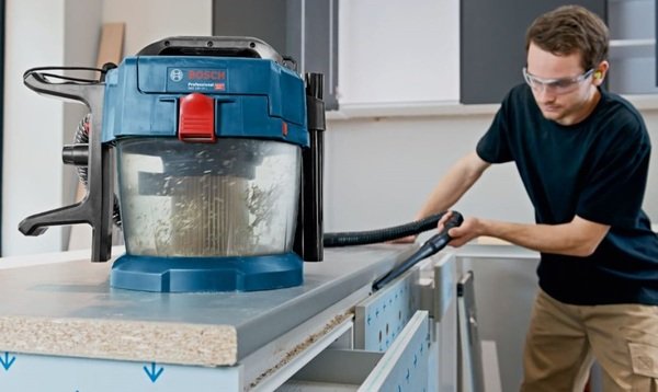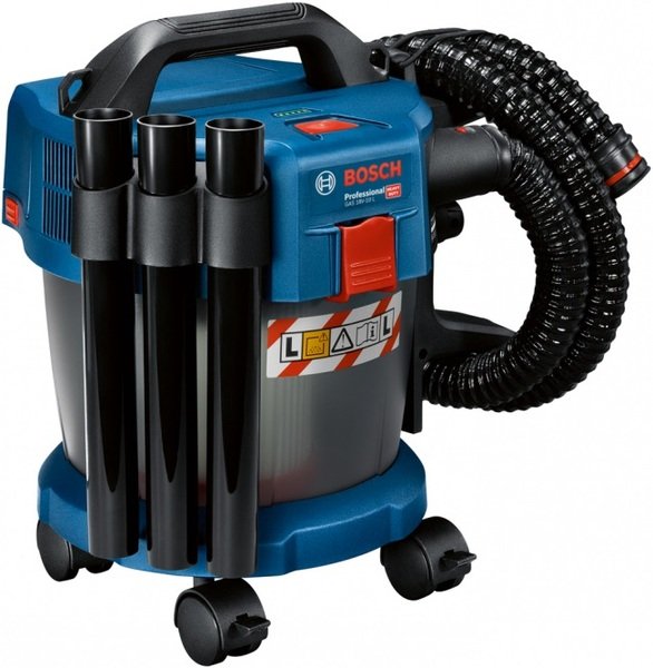 Акумуляторний пилосос GAS 18V-10 L - чудове мобільне рішення для підтримки робочого місця в чистоті. Цей пилосос призначений для сухого та вологого прибирання, що дає змогу працювати не тільки з сухими матеріалами (пил, стружка, тирса тощо), а й швидко збирати воду. Технологія Rotational Airflow (повітря, що обертається) підтримує постійну силу всмоктування під час роботи. Напівпрозорий контейнер допомагає контролювати його заповнення, а дві зручні засувки на корпусі дають змогу відстебнути його і витрусити всього за кілька секунд. Конструкцію пилососа продумано до дрібниць - аксесуари та шланг закріплюються безпосередньо на корпусі, і водночас не заважають під час перенесення. Акумулятор надійно захищений кришкою, що приховує його від пилу та інших дрібних частинок, які можуть негативно позначитися на роботі інструменту. А щоб не довелося відкривати кришку і перевіряти заряд, що залишився на акумуляторі, - на корпусі розташовується інформативний індикатор заряду, який завжди підкаже, коли слід замінити акумулятор. Широкий набір аксесуарів у комплекті перетворюють роботу з пилососом на одне задоволення: підлогова насадка, щілинна насадка та подовжувальні трубки - дають змогу очистити будь-яке місце. Особливу увагу варто приділити підлоговій насадці преміального рівня - м'які щіточки захищають дерево від подряпин, коліщата дають змогу легко керувати насадкою, а гумовий ущільнювач чудово збирає воду і дрібні частинки пилу та тирси. Пилосос можна встановити як стаціонарно, так і возити за собою завдяки 4 коліщаткам у комплекті. А якщо необхідно працювати на висоті - ремінь дає змогу повісити пилосос на плече і комфортно працювати навіть під стелею. Час роботи на одному акумуляторі становить приблизно 4 хвилини на кожен Ач. GAS 18V-10 L входить до акумуляторної сім'ї Bosch Professional 18V і сумісний з усіма акумуляторами з цієї лінійки.