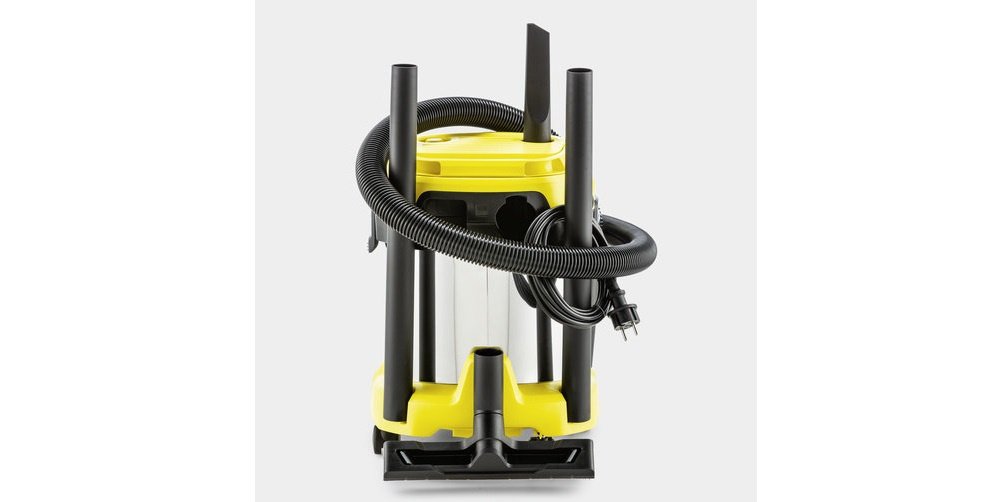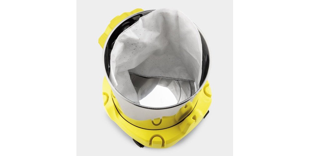 При своїй компактній конструкції апарат WD 2 Plus S V-15/4/18 вражає високою силою всмоктування та енергоефективністю – споживана потужність становить лише 1000 Вт. Він гарантує чудові результати збору сухого та вологого сміття як дрібних, так і великих розмірів. Цей господарський пилосос оснащений міцним 15-літровим сміттєзбірником з нержавіючої сталі, 4-метровим кабелем, шлангом, що всмоктує, довжиною 1,8 м з прямою рукояткою, насадкою для підлоги зі вставками, поролоновим фільтром і фільтр-мішком з нетканого матеріалу. Крім того, в ньому передбачено практичну функцію видування для видалення сміття з місць, що не дозволяють збирати його пилососом. Панель у верхній частині апарата забезпечує надійне укладання інструментів та дрібних деталей, таких як цвяхи або шурупи. Насадка для підлоги та подовжувальні трубки можуть швидко і зручно закріплюватися на відбійнику пилососа. Крім того, він вражає компактністю при зберіганні, зручністю розміщення приладдя, замками Pull & Push та ручкою ергономічної форми, що забезпечує зручне перенесення.