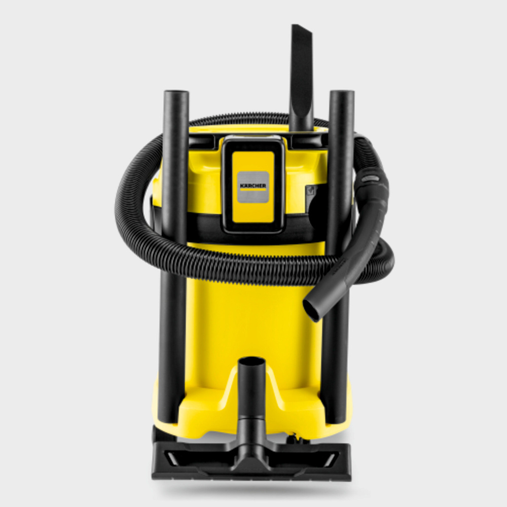Для прибирання без кордонів: бездротовий господарський пилосос WD 3-18, реалізований на акумуляторній платформі Kärcher Battery Power 18 В, вирізняється компактністю, універсальними можливостями та максимальною мобільністю. Апарат, що оптимально поєднується з 2-метровим всмоктувальним шлангом і насадкою для підлоги зі вставками, забезпечує швидке збирання дрібного або крупного вологого і сухого сміття. Він укомплектований міцним пластмасовим сміттєзбірником об'ємом 17 л, нерозбірним патронним фільтром і фільтр-мішком з нетканого матеріалу. Всмоктувальний шланг може підвішуватися у верхній частині апарата для компактного й акуратного зберігання. Іншими особливостями апарата є практична функція видування для видалення сміття з важкодоступних місць, наявність майданчика для укладання інструментів і дрібних деталей, зручний поворотний вимикач, ергономічна ручка для перенесення і замки Pull & Push, що дають змогу легко приєднувати і від'єднувати сміттєзбірник. Для зручного закріплення подовжувальних трубок і насадки для підлоги на час перерв у роботі або зберігання передбачені тримачі, сформовані у відбійнику пилососа.