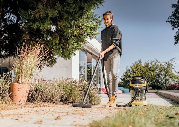 Господарський пилосос WD 5 S V-25/5/22 оптимально поєднується з входить в комплект його поставки всмоктувальним шлангом і насадкою для підлоги, що перемикається, завдяки чому при невисокій споживаній потужності (1100 Вт) гарантуються чудові результати збору сміття всіх видів – сухого або вологий. великого чи дрібного. Апарат оснащений міцним 25-літровим сміттєзбірником з нержавіючої сталі, 5-метровим кабелем, всмоктувальним шлангом довжиною 2,2 м зі знімною антистатичною рукояткою, насадкою для підлоги, що перемикається, плоским складчастим фільтром і фільтр-мішком з нетканого матеріалу. Плоский складчастий фільтр дозволяє чергувати операції вологого та сухого прибирання без витрат часу на заміну фільтра, а запатентована система швидкого вилучення виключає контакт з брудом. Система очищення фільтра, активована натисканням кнопки забезпечує швидке відновлення повної сили всмоктування. Завдяки знімній конструкції руків'я насадки можуть приєднуватися безпосередньо до шлангу, що всмоктує, який може компактно і надійно зберігатися у верхній частині апарата. Для швидкого та зручного закріплення подовжувальних трубок та насадки для підлоги передбачені тримачі, сформовані у відбійнику пилососу.