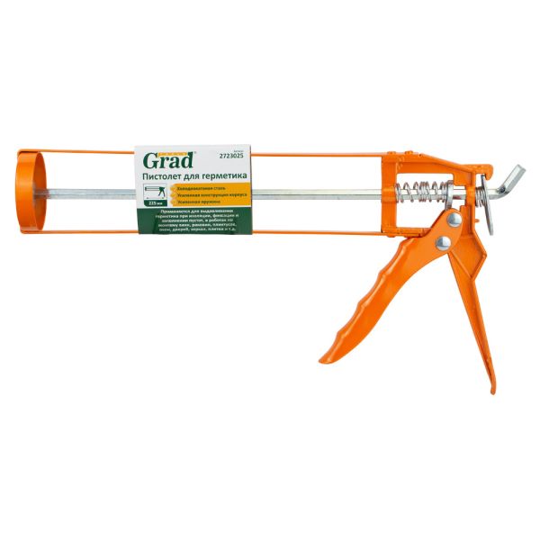 Пістолет для герметиків 225мм (скелет) GRAD (2723025) призначений для роботи з герметиками та силіконом. Застосовується для створення ізоляції при монтажі сантехніки, вікон, дверей, герметизації швів плитки та безлічі інших робіт. Пістолет призначений для побутового використання.