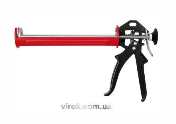 Віджимач для щільних мас. Легкий, виготовлений з листової сталі, лакований. Зручна, профільована ергономічна ручка з алюмінію, дозволяє ефективно наносити густі маси, наприклад, клеї, герметики, мастила і т.д. з типових 300 мл контейнерів. Посилена конструкція /подвійна поршнева направляюча/ збільшує силу тиску і ефективність нанесення, що особливо важливо при видавлюванні густих, липких речовин або при роботі при низьких температурах /застигаючі маси важко видавлювати і часто пошкоджують слабкі витискачі/. Для точної, ефективної екструзії густих мас /наприклад, силікону/ з типових 300-міліліметрових контейнерів.