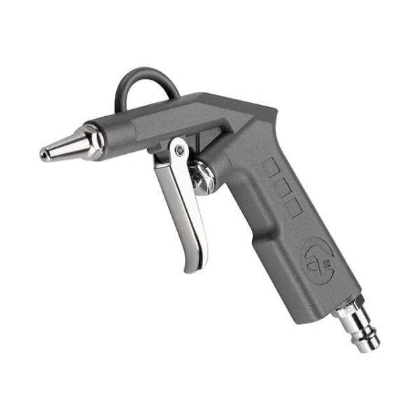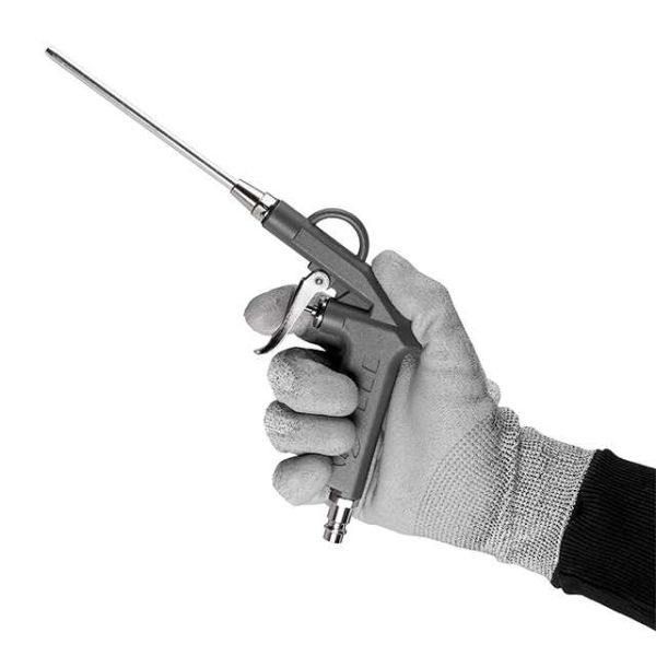 Призначення Універсальний пістолет для продування використовується на підприємствах, заводах для видалення пилу та відходів виробництва з робочих місць, а також застосовується і в побуті: для продування труб, очищення автомобіля, комп'ютера та ін. Можливості Особливістю даної моделі є наявність подовженого сопла в комплекті, що дозволяє дістати до вузьких, важкодоступних місць, куди не дотягнутися звичайною насадкою. Також можна використовувати стандартне коротке сопло. Усі насадки мають шестигранний профіль перед різьбою для зручного монтажу та демонтажу. Потік повітря легко регулюється важелем та клапаном, які передбачені в конструкції пістолета для продування. Зручна та міцна конструкція Ергономічний дизайн пістолета для продувки забезпечує комфортне утримання в руці та просту, ефективну роботу. Має компактні розміри та легку вагу, ним зручно працювати. Виготовлений пістолет з високоякісного матеріалу, стійкий до іржі та довговічний. Для підключення пістолета до пневматичного шланга передбачений універсальний фітинг під швидкороз'ємне з'єднання.