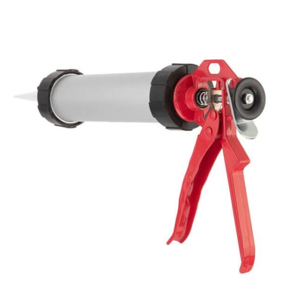 Призначення Пістолет призначений для швидкого та зручного видавлювання силіконових герметиків, клеїв, акрилу, бітумів, густих герметизуючих розчинів тощо. Використовується для герметизації стиків, установки сантехніки, закладення тріщин, при будівельно-монтажних, авторемонтних та інших роботах з використанням туб 300 мл, довжиною 225 мм. Міцний корпус Пістолет в закритому корпусі з алюмінієвого сплаву міцний та зносостійкий, не схильний до появи корозії. Міцна конструкція металевої ручки та плунжера забезпечує стабільну роботу навіть з великим зусиллям та щільними складами герметиків та клеїв. Зручний у роботі Сталевий ергономічний та міцний курок дозволяє передати більше зусилля від руки на шток, не гнеться, не ламається і не втомлює руку. Фіксатор штока одним натисканням звільняє шток для моментальної зупинки подачі матеріалу або зміни туби. У комплекті передбачений аплікатор для рівномірного нанесення «носик», також зручний для роботи у важкодоступних місцях. Пістолети для герметика №1 в Україні. За результатами незалежного рейтингового дослідження у рамках проекту Українська Народна Премія 2021 року.