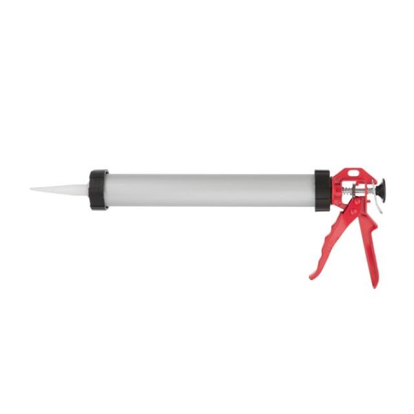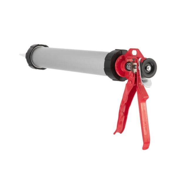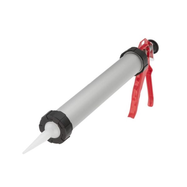 Призначення Пістолет призначений для швидкого та зручного видавлювання силіконових герметиків, клеїв, акрилу, бітумів, густих герметиків тощо. Використовується для герметизації стиків, встановлення сантехніки, закладення тріщин, при будівельно-монтажних, авторемонтних та інших роботах з використанням туб 600 мл, довжиною 375 мм. Міцний корпус Пістолет в закритому корпусі з алюмінієвого сплаву міцний та зносостійкий, не схильний до появи корозії. Міцна конструкція металевої ручки та плунжера забезпечує стабільну роботу навіть з великим зусиллям та більш щільними складами герметиків та клеїв. Зручний у роботі Сталевий ергономічний та міцний курок дозволяє передати більше зусилля від руки на шток, не гнеться, не ламається і не втомлює руку. Фіксатор штока одним натисканням звільняє шток для моментальної зупинки подачі матеріалу або зміни туби. У комплекті передбачений аплікатор-«носик» для рівномірного нанесення, також зручний для роботи у важкодоступних місцях. Пістолети для герметика №1 в Україні. За результатами незалежного рейтингового дослідження у рамках проекту Українська Народна Премія 2021 року.