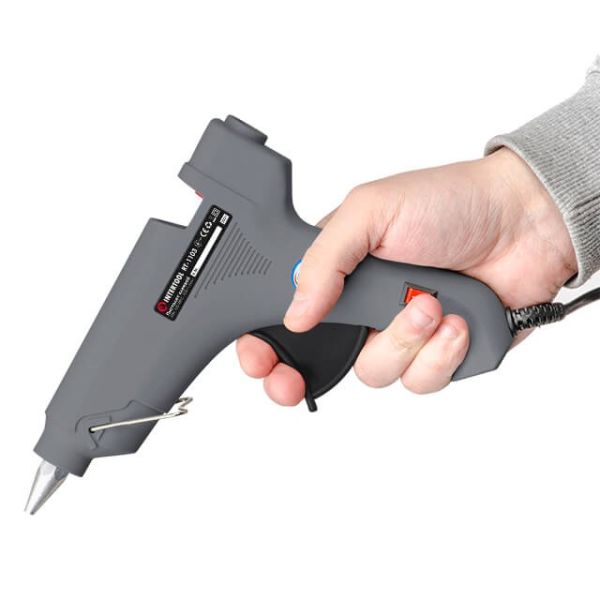 Призначення Клейовий пістолет INTERTOOL RT-1103 ідеально підходить для хобі, виготовлення різноманітних виробів та для ремонтних робіт. Стане в пригоді дизайнерам, флористам, конструкторам, та іншим умільцям в напрямку «хенд-мейд». Можливості З допомогою термопістолета ви моментально склеїте елементи, предмети, поверхні, при цьому клейові стрижні добре взаємодіють з більшістю матеріалів: папером, картоном, тканиною, шкірою, склом, керамікою, деревом тощо. Вам більше не потрібно годинами чекати склеювання деталей - вже після декількох хвилин після нанесення у вас виходять міцні, надійні шви, які не поступаються міцністю механічному кріпленню. Зручна робота Клейовий пістолет має компактний корпус зі зручним курком, це полегшує роботу з дрібними виробами в умовах обмеженого простору та дозволяє точно дозувати клей в необхідних кількостях. Вам не доведеться щоразу відключати термопістолет від електромережі. На корпусі розміщена кнопка вмикання/вимикання, достатньо просто на неї натиснути й надлишки клею не будуть вам дошкуляти під час тривалого процесу склеювання або перерви в роботі. Підпружинена складана ніжка-підставка стійка та гарантує безпеку під час експлуатації, ви можете залишати термопістолет на столі, не боячись займання.