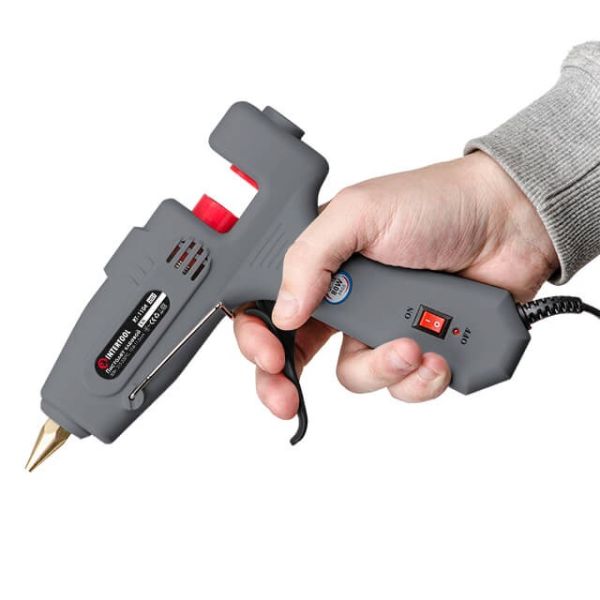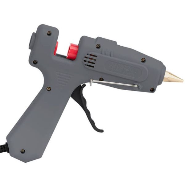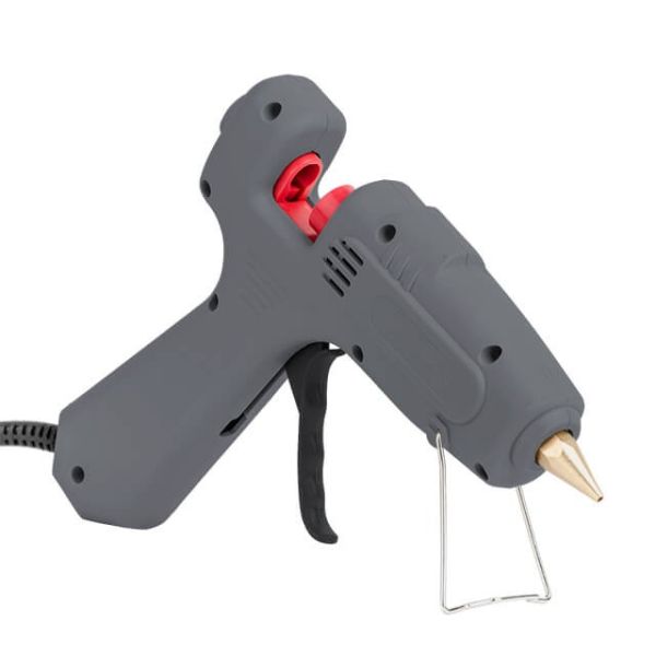 Призначення Клейовий пістолет INTERTOOL RT-1104 ідеально підходить для хобі, виготовлення різноманітних виробів та для ремонтних робіт. Стане в пригоді дизайнерам, флористам, конструкторам, та іншим умільцям зі сфери «хенд-мейд». Можливості За допомогою термопістолета ви моментально склеїте елементи, предмети, поверхні, при цьому клейові стрижні добре взаємодіють з більшістю матеріалів: папером, картоном, тканиною, шкірою, склом, керамікою, деревом тощо. Вам більше не потрібно годинами чекати склеювання деталей, вже після декількох хвилин після нанесення у вас виходять міцні, надійні шви, які не поступаються міцністю механічному кріпленню. Зручна робота Клейовий пістолет має компактний корпус зі зручним курком, це полегшує роботу з дрібними виробами в умовах обмеженого простору та дозволяє точно дозувати клей в необхідних кількостях. Вам не доведеться щоразу відключати термопістолет від електромережі. На корпусі розміщена кнопка вмикання/вимикання, достатньо просто на неї натиснути й надлишки клею не будуть вам дошкуляти під час тривалого процесу склеювання або перерви в роботі. Підпружинена складана ніжка-підставка стійка та гарантує безпеку під час експлуатації, ви можете залишати термопістолет на столі, не боячись займання.