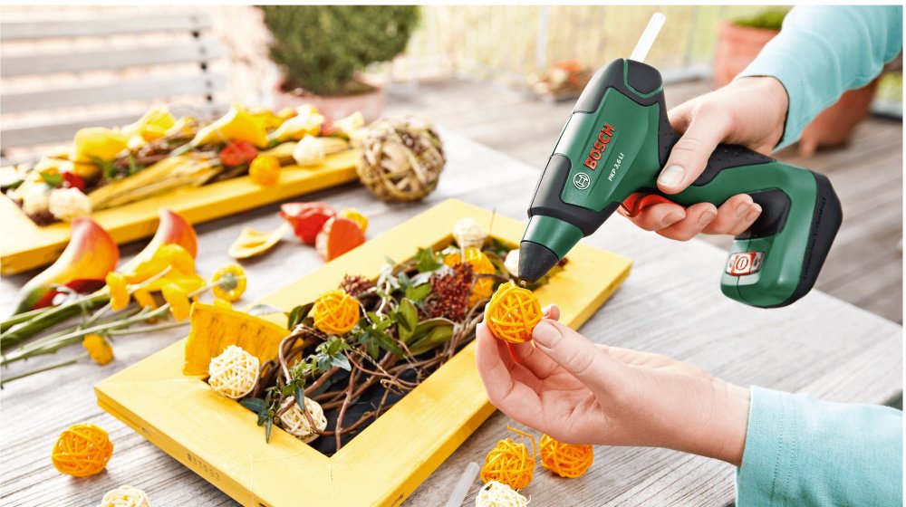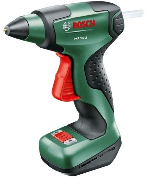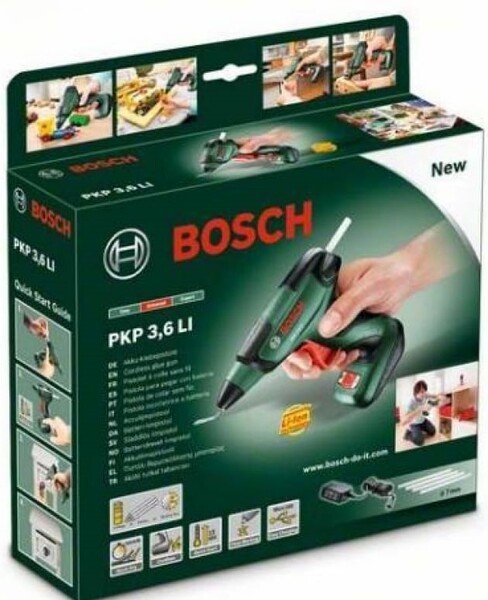 Завдяки своїй компактній конструкції цей акумуляторний клейовий пістолет дуже зручний в зверненні. Літій-іонний акумулятор не має ефекту пам'яті і саморозряду, тому не втрачає заряд під час зберігання. Розігрів всього за 15 секунд дозволяє швидко і без очікування приступати до роботи над проектами. ЗА допомогою клейовий пістолет PKP 3,6 LI можна склеювати практично будь-які матеріали: папір, картон, тканину, шкіру, пластик, деревину, метал, пробку або камінь. Він перетворить дрібний ремонт і роботи з декорування в розвага.