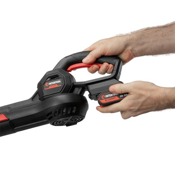 Призначення Акумуляторна повітродувка використовується для видалення садового сміття, листя, гілок, скошеної трави тощо. Завдяки потужному потоку повітря і подовженій насадці сконцентрований потік ефективно видуває сміття із важкодоступних місць: жолобів, стиків, між цеглинами тощо. Дуже легка, компактна і повністю портативна модель, працює від Li-Ion акумулятора, забезпечуючи ефективну і надійну роботу. Продуктивність При швидкості потоку повітря 144 км/год. прибирання вашого саду чи присадибної ділянки буде виконане з мінімальними витратами сил та часу. Повітродувка допоможе зібрати скошену траву, солому чи листя, а також використовується для очищення від сміття різних жолобів, кутів, навколо стиків, у важкодоступних місцях. Комфортна робота Повітродувка має малу вагу і компактний дизайн, вона легка у керуванні та не потребує спеціальних навичок для її використання. Сопло з двох частин дозволяє вибрати оптимальну довжину. Завдяки використанню акумуляторів виключені шкідливі викиди в атмосферу порівняно з бензиновими версіями. Працює майже безшумно, що не шкодить здоров'ю оператора і знижує втому. Сумісні акумулятори і зарядні пристрої Повітродувка садова сумісна з акумуляторами і зарядними пристроями із серії STORM 20 V: WT-0340 - Акумулятор 20 В, Li-ion, 2 Аг; WT-0341 - Акумулятор 20 В, Li-ion, 4 Аг; WT-0342 - Акумулятор 20 В, Li-ion, 6 Аг; WT-0343 - Акумулятор 20 В, Li-ion, 8 Аг; WT-0344 - Пристрій зарядний для акумуляторів Li-ion 20 В, струм заряду - 2 А; WT-0345 - Пристрій зарядний для акумуляторів Li-ion 20 В, струм заряду - 4 А; WT-0346 - Пристрій зарядний для акумуляторів Li-ion 20 В, струм заряду - 4+4 А, два термінали заряджання.