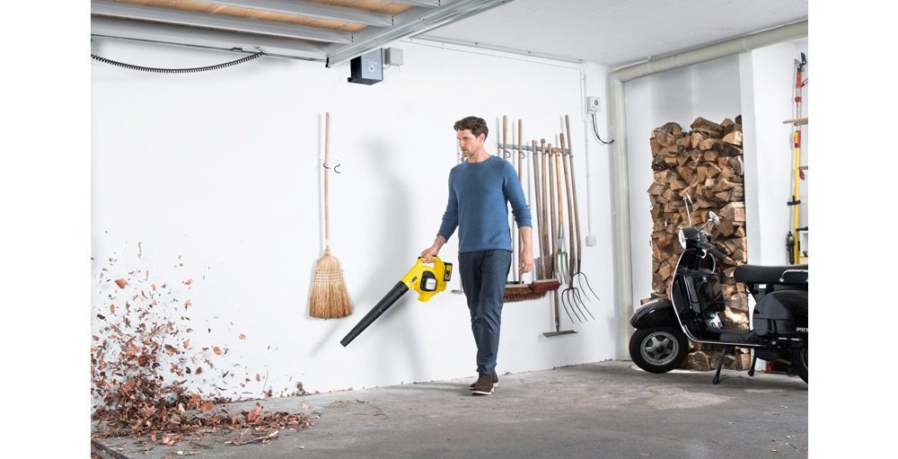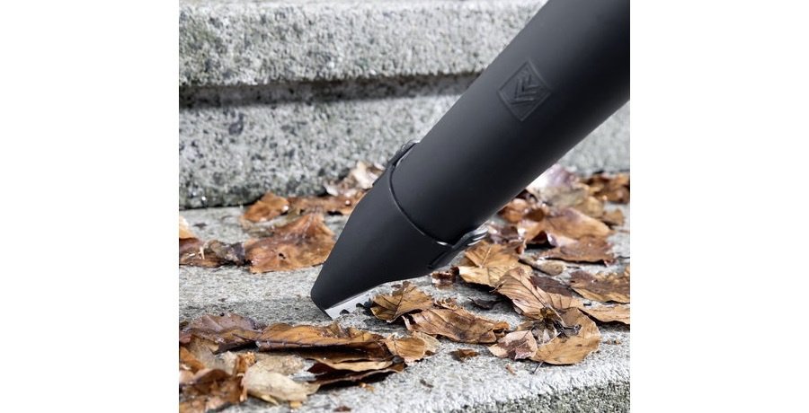 Акумуляторна повітродувка 18 В з гарним балансуванням ергономічно поміщається в руці й досягає максимальної швидкості потоку повітря 210 км/год. А знімна плоска насадка зі скребком дозволяє легко здувати листя, а також зчищати мокре листя або бруд, що злежався.